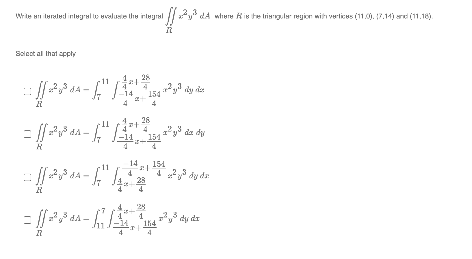 . Compute the following double integral over the indicated rectangle a by integrating with respect to x x first and b by integrating with respect to y y first. Youll get a detailed. Calculate the iterated integral.
